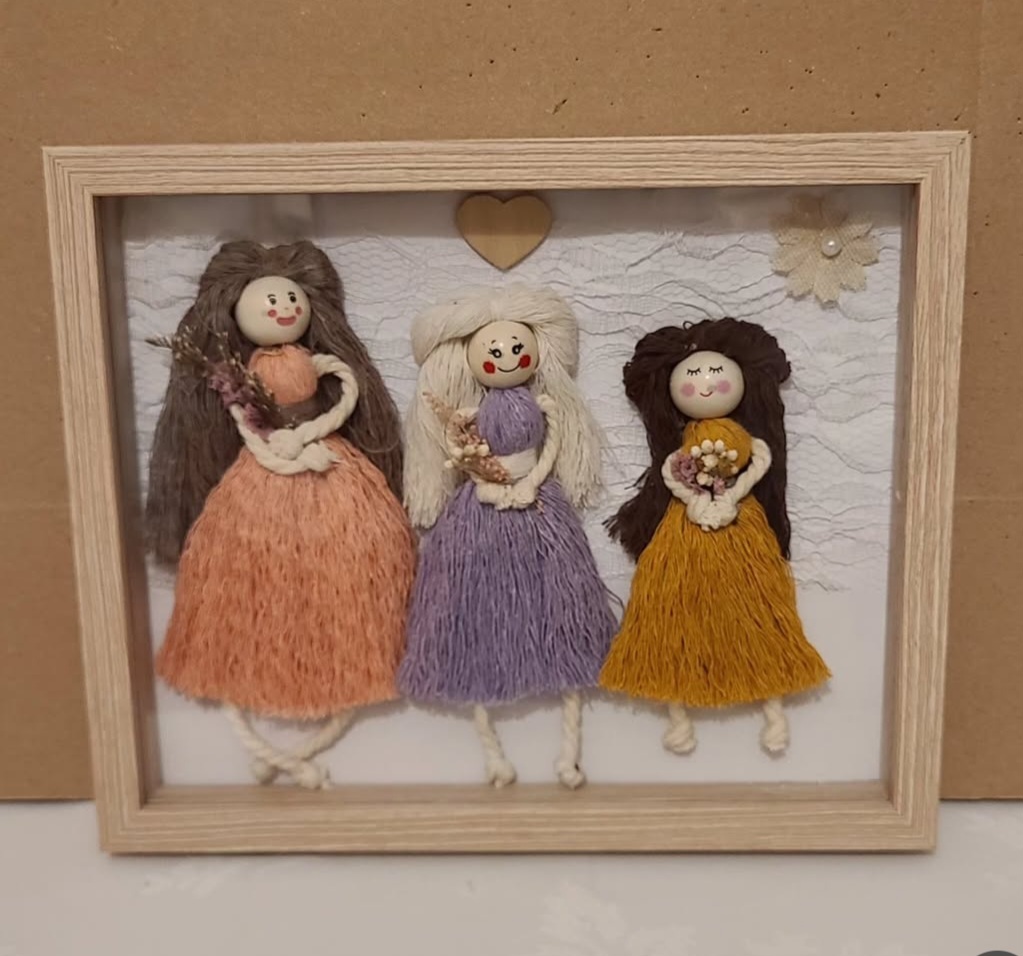 - Ce cadre de poupées est composé de trois personnages.